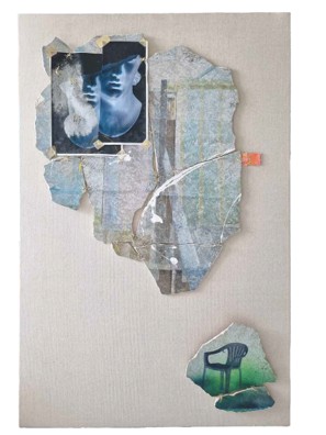 Raffaella visited my studio in Shanghai years ago, and this work was there at the time. The studio was quite chaotic—almost like an explosion of ideas—with artworks covering every surface. This piece is a self-portrait painted on a traditional Shanghai woven bed. The woven rope structure creates a surface similar to a canvas, but with large gaps between the threads. Often there simply wasn’t enough material to paint small details—sometimes there was nowhere to place the brush.