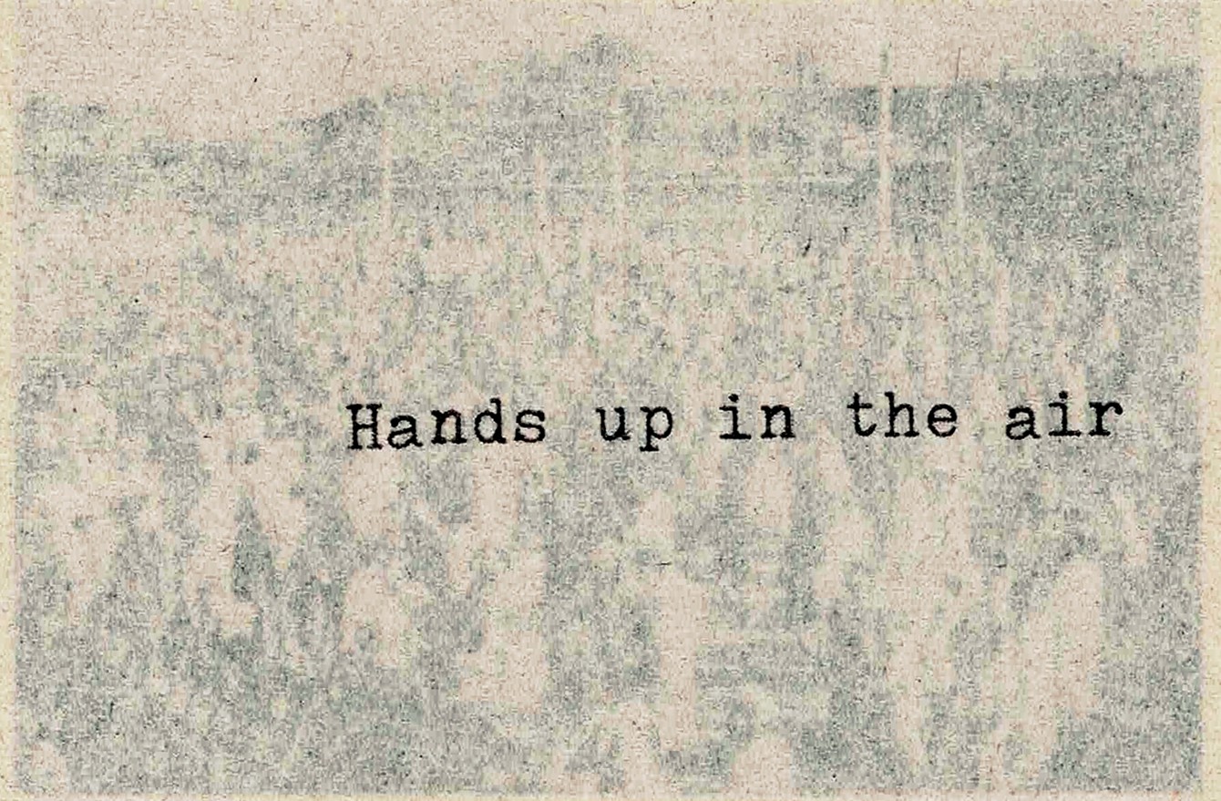 Through an online search of a library in the United States I found an archival record detailing the Koreanin dependence movement. It represents unarmed civilians participating in the "Manse" movement. What caught my eye in the caption of this photograph was the phrase "Hands up in the air."
