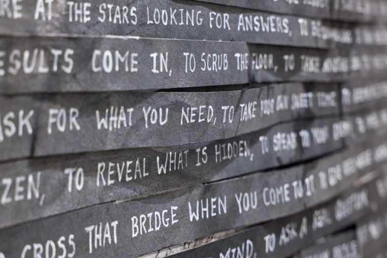 My work has a lot to do with language, with sound, and with being here together now. I’m really interested in context—in how we find ourselves together, and in what the residue of that is, in a way. For me, language, and the collecting of people’s responses, is one of the ways I feel I can express what being in community means to me.