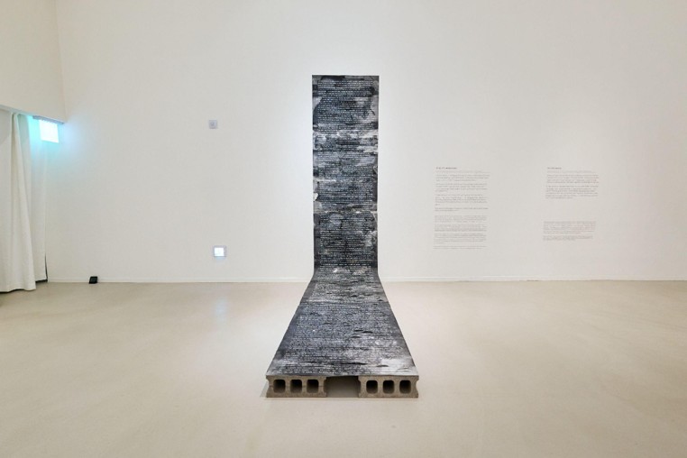 When in the Course of Human Events is a piece currently on view at the PODO Museum in Jeju. In 2019, people were in the streets in Lebanon, Chile, and Hong Kong. I was thinking about the U.S. Declaration of Independence and its opening phrase. I asked people to complete it, and I transcribed their responses onto microfiber paper in the form of a long scroll. There is also an audio version called Declaration, in which I read the entire text in the first person, overlaid with sounds from protests and from my daily life in New York.
