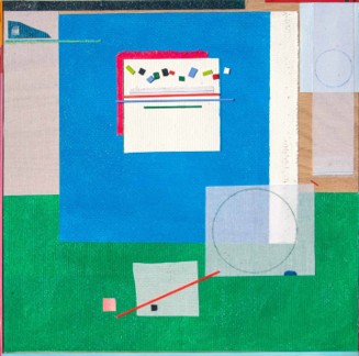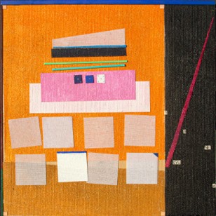 After that, I began actively creating collages. Collage is more useful than painting for immediately transferring and attaching surfaces. While painting fills the canvas through the act of drawing, I wanted to create images through the assembly of appropriate lines and colours. Initially, I made these works by attaching thin pieces of wood and plastic fabric.